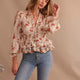 Blouse Fleurie Avec Col En V, Volants Et Taille Ajustable Pour Femme | Idéale Pour Les Tenues Quotidiennes Et Les Occasions