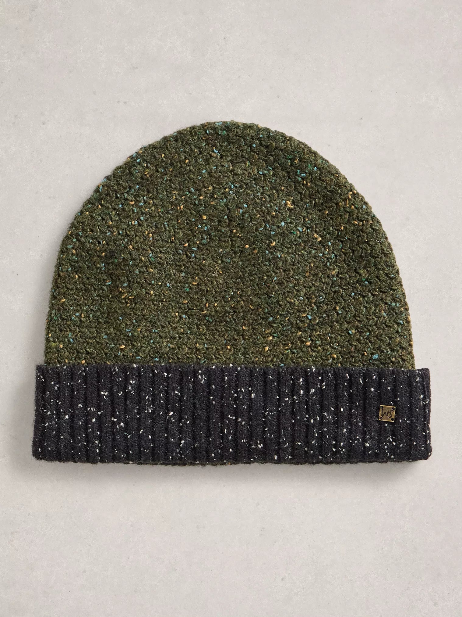 Ce bonnet est conçu avec une maille texturée et une finition bicolore. Il protège la tête pendant les périodes froides et convient à un usage quotidien. Le revers côtelé offre un ajustement stable et une apparence structurée.