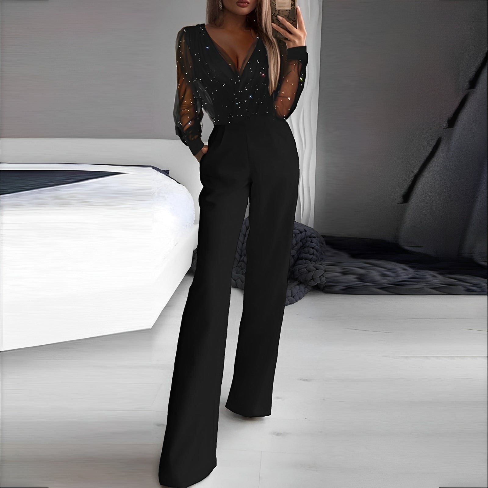 Combinaison À Col En V avec Taille Haute Et Jambes Larges pour Femme | Idéale pour Le Quotidien Et Les Événements