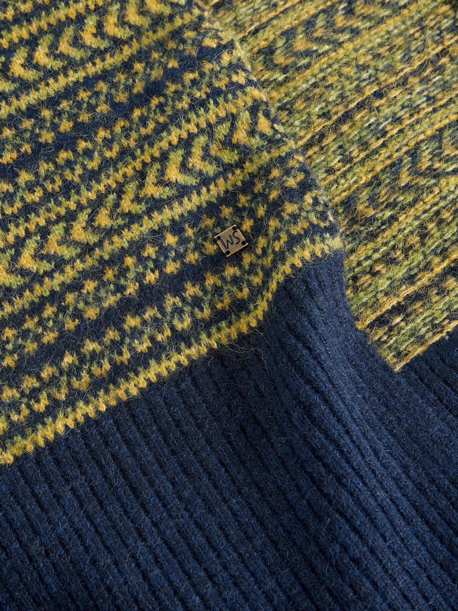 Cette écharpe présente un motif jacquard inspiré des modèles traditionnels. Elle est conçue pour protéger le cou et compléter une tenue pendant les périodes froides. Sa longueur de 180 cm permet un port confortable et polyvalent.