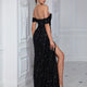 Robe De Soirée À Sequins avec Épaules Dénudées Et Fente pour Femme | Idéale pour Les Événements Formels