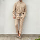 Cet ensemble pour homme comprend une chemise boutonnée à manches longues et un pantalon long assorti. Conçu pour être porté lors de journées estivales ou de sorties décontractées, il offre une tenue polyvalente adaptée à différentes occasions. Les deux pièces peuvent être portées ensemble ou séparément.