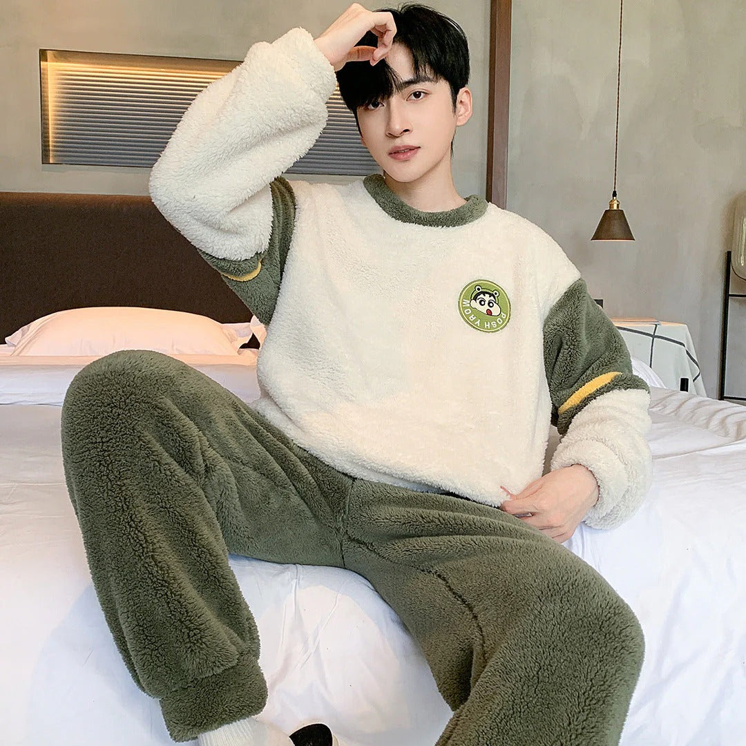 Ensemble De Pyjama Pour Homme Avec Col Rond Pour Un Usage À La Maison | Idéal Pour L’Hiver