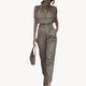 Cet ensemble comprend un haut sans manches à col montant avec poches poitrine et une coupe structurée aux épaules. Il est assorti à un pantalon long taille haute avec plis sur le devant. Conçu pour les journées chaudes, il peut être porté au quotidien ou lors d’occasions informelles.