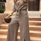 Ensemble Deux Pièces avec Haut Boutonné Et Pantalon Large pour Femme | Idéal pour Un Look Décontracté Et Vacances