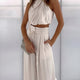 Cet ensemble comprend un haut sans manches et un pantalon à jambes larges avec ceinture réglable. Conçu pour les journées chaudes, il peut être porté pour un usage quotidien ou des occasions décontractées. Offre une coupe ample et ajustable pour plus de fonctionnalité.
