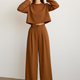 Ensemble Deux Pièces Avec Pantalon Large Plissé Et Haut Court À Manches Longues Pour Femme | Idéal Pour Journée Ou Soirée