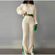 Ensemble Deux Pièces En Maille Côtelée avec Top Court Et Pantalon Taille Haute pour Femme | Idéal pour Les Sorties Décontractées