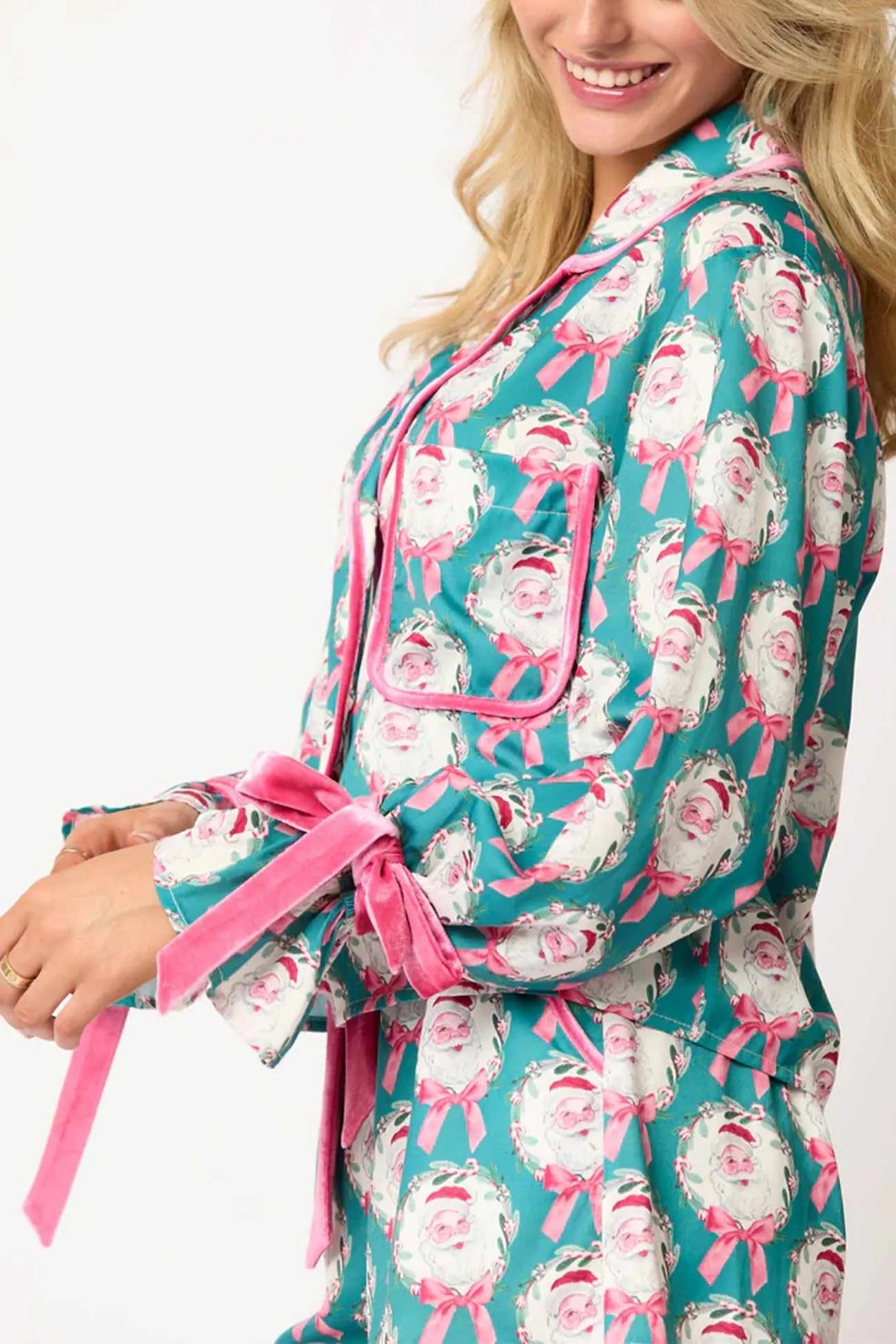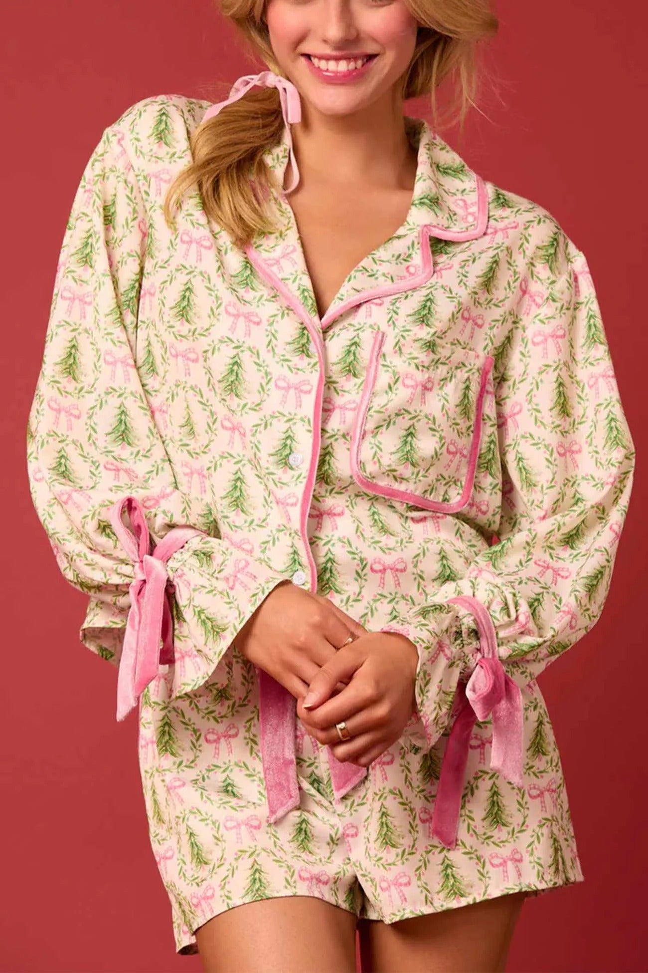 Ensemble Deux Pièces Imprimé Noël avec Col à Revers et Manches Longues pour Adulte | Idéal pour la Période des Fêtes