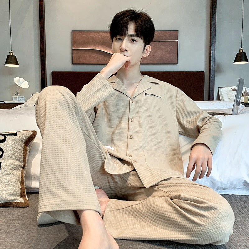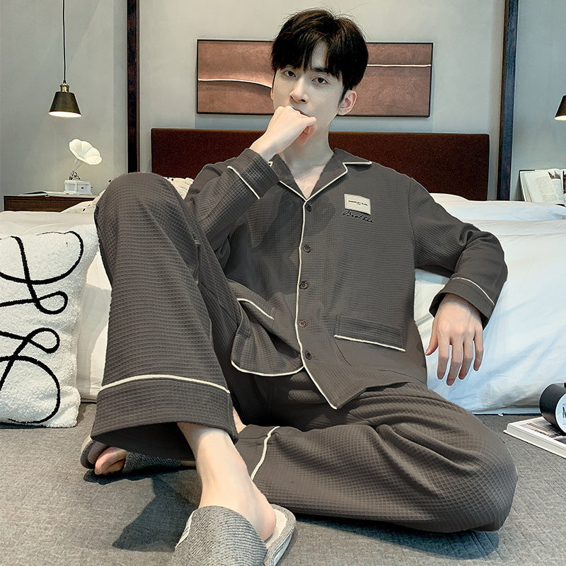 Cet ensemble deux pièces pour homme comprend un haut à manches longues de type veste et un pantalon assorti. Il est conçu pour être porté à la maison ou pour des sorties occasionnelles lors de températures modérées. Sa coupe convient aux adultes, y compris aux grandes tailles.
