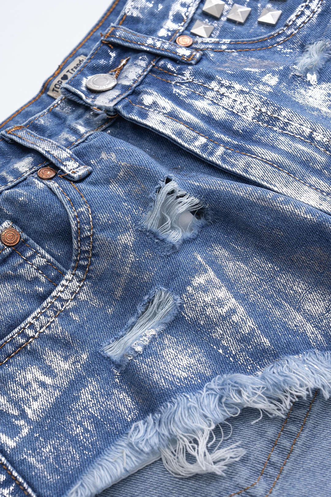 Jean pour femmes conçu avec une coupe décontractée et une finition métallisée. Convient pour un usage quotidien ou des sorties décontractées. Proposé avec des mesures standardisées pour convenir à diverses morphologies.
