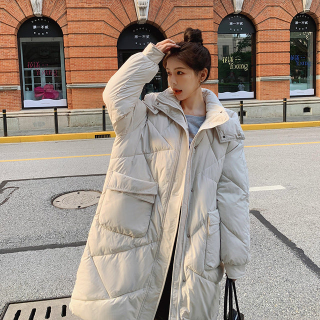 Ce manteau matelassé long est conçu comme un vêtement d’extérieur pratique pour les saisons froides. Il présente une coupe au-dessus du genou, des manches longues et une fermeture à boutons. Son motif uni facilite l’association avec divers vêtements du quotidien.