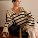 Pull à Capuche avec Rayures Noires pour Femme | Idéal pour la Mi-Saison et l’Hiver
