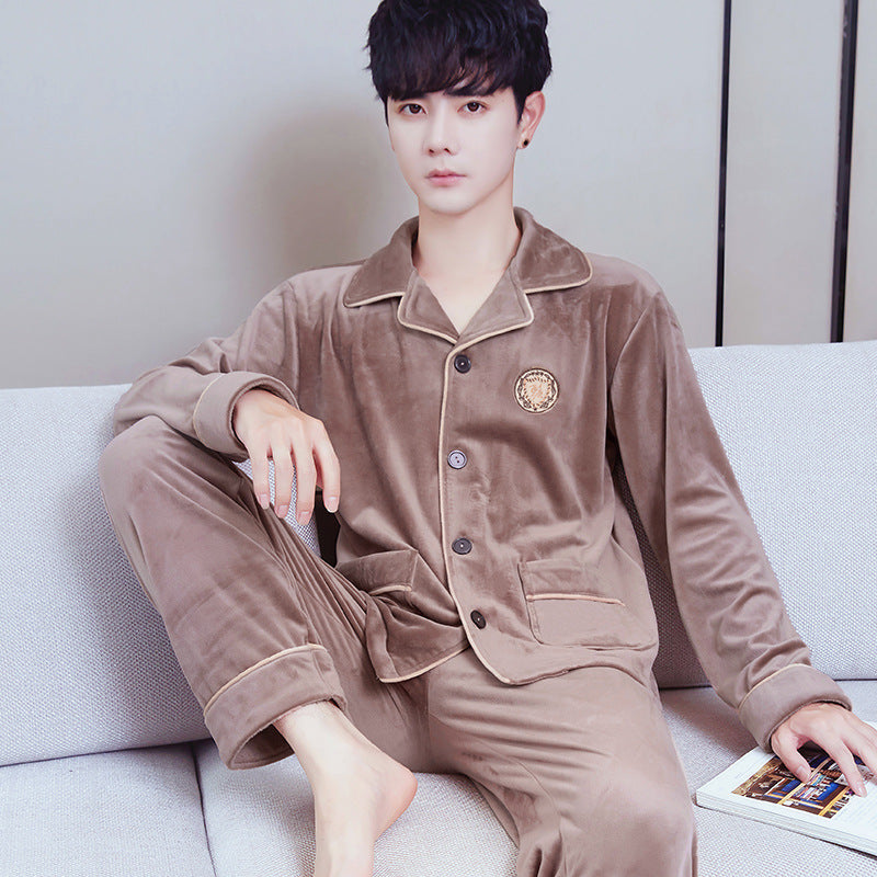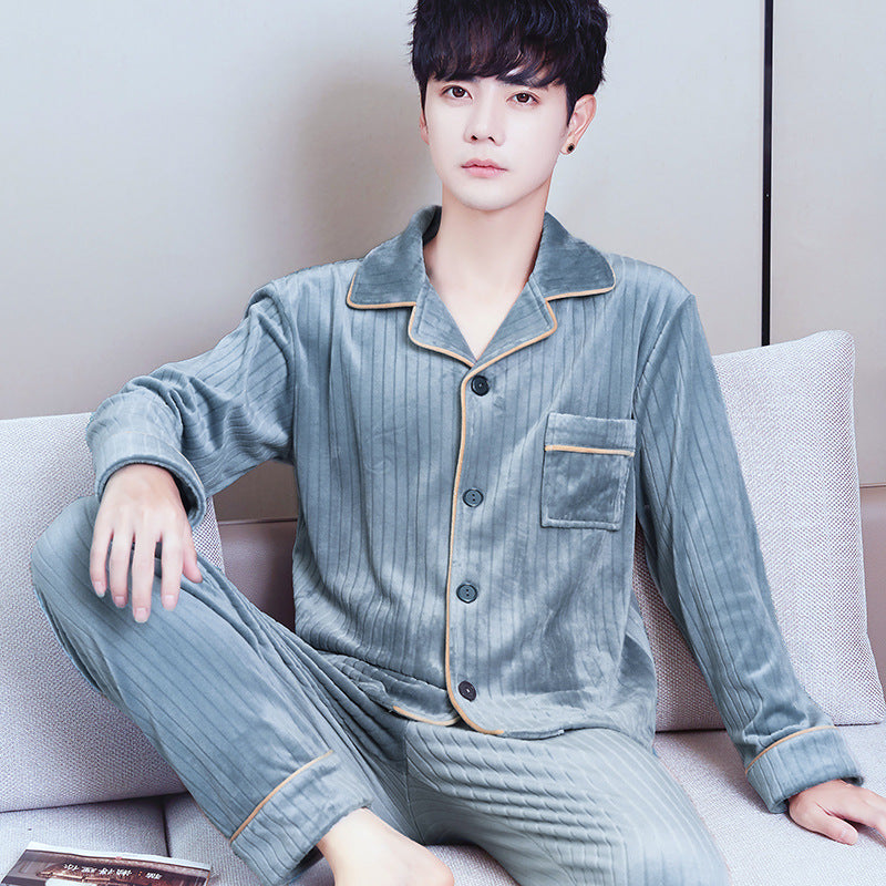 Ce pyjama deux pièces pour homme comprend un haut à manches longues et un pantalon. Il est conçu pour un usage domestique, notamment pour les moments de détente ou comme tenue de nuit. Sa conception couvre l’ensemble du corps et convient aux saisons plus fraîches comme l’automne et l’hiver.