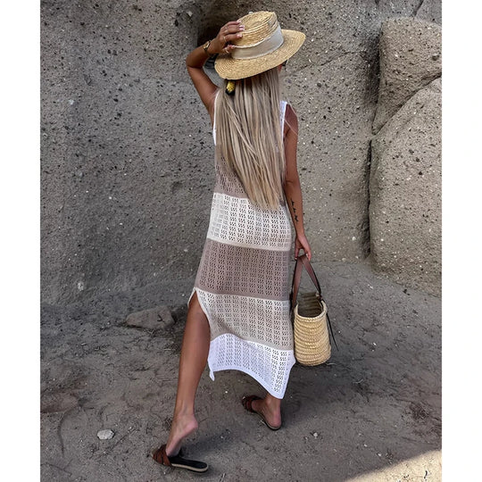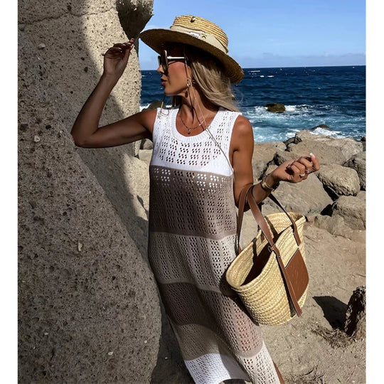 Robe Longue Blanche en Crochet pour Femme | Idéale pour la Plage et les Vacances d'Été