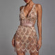 Cette robe midi pour femmes présente une coupe ajustée avec un col en V profond. Son design est orné de paillettes et de franges mobiles pour un effet visuel distinctif lors des mouvements. Elle convient pour les soirées, cocktails ou événements formels.