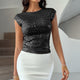 Top Slim Fit à Paillettes avec Col Rond et Manches Courtes pour Femme | Idéal pour les Soirées et Occasions Festives