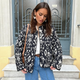 Cette veste pour femme présente un motif noir et blanc intégral et une coupe ample adaptée à un usage quotidien. Son design graphique apporte une touche visuelle distinctive tout en restant fonctionnel. Ce modèle convient pour la période hivernale et les activités en extérieur.