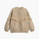 Cette veste combine une partie supérieure en maille texturée et un corps matelassé pour un style mixte entre confort et structure. Elle est dotée de poches latérales fonctionnelles et d’une fermeture à boutons sur le devant. Les franges décoratives ajoutent une touche distinctive adaptée aux looks du quotidien.